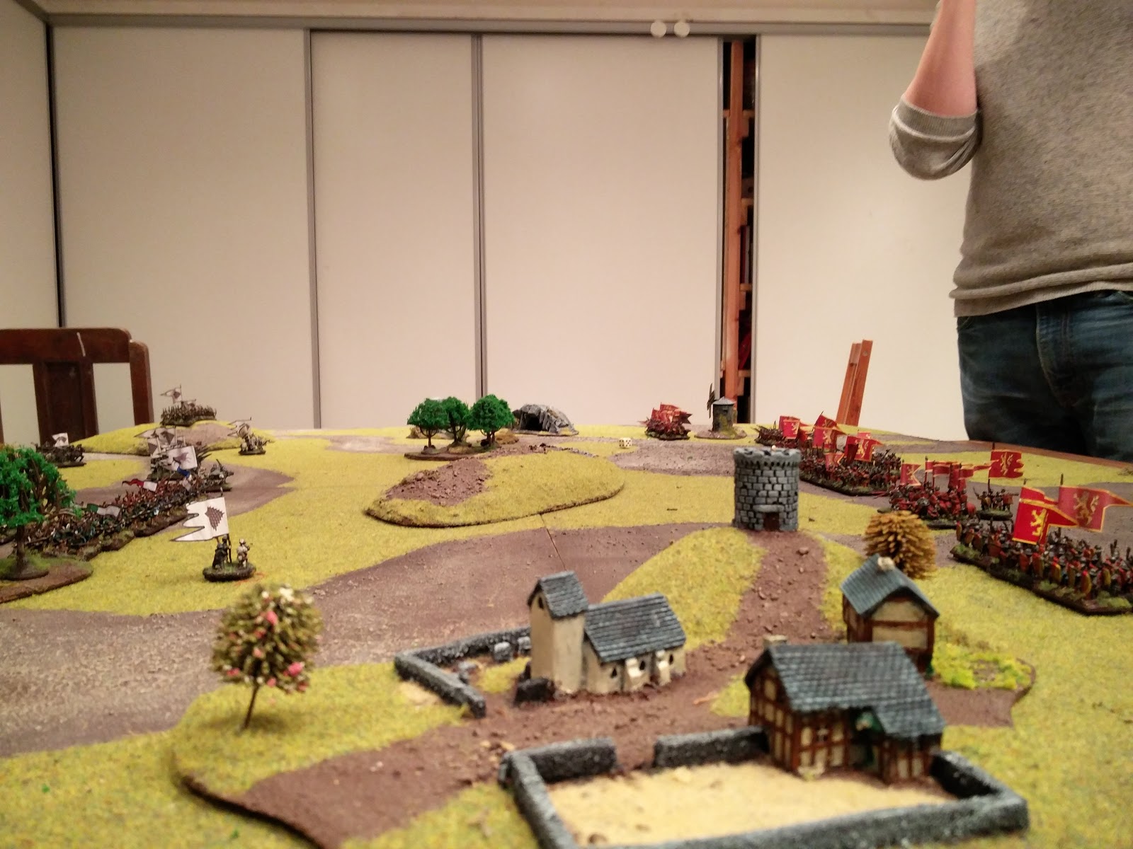 2000 points d’armée prennent position à 20 cm du bord des long coté de la table.